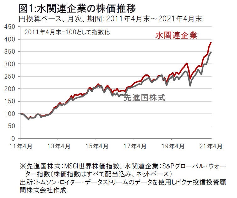 水関連企業(現地通貨ベース)の株価は株式市場が上昇するなか、それを上回る上昇となりました。