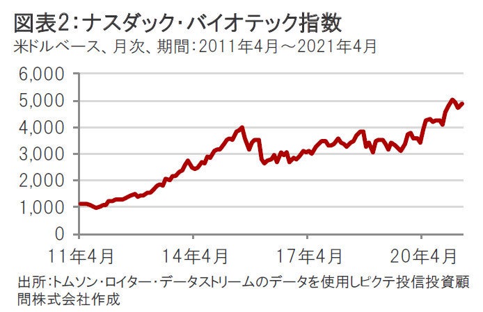 バイオ医薬品セクターについては、短期的には新型コロナウイルスの感染動向とワクチンの動向に注目が集まっています。一部の製薬企業やバイオ医薬品企業は引き続き新型コロナウイルスの治療薬やワクチンの開発を急ピッチで行っています。ワクチンの治験や各国政府によるワクチン接種はすすめられており、現在は生産能力などのボトルネックに注目が集まっています。一方、新型コロナウイルスの影響により検診を控える動きなどがあり、医薬品企業の業績に影響が出ています。また米国で薬価を含むヘルスケア制度全般の改革の動きや、昨年来株価が大きく上昇した一部の中小型銘柄の流動性リスクなども注視していく必要があると考えます。