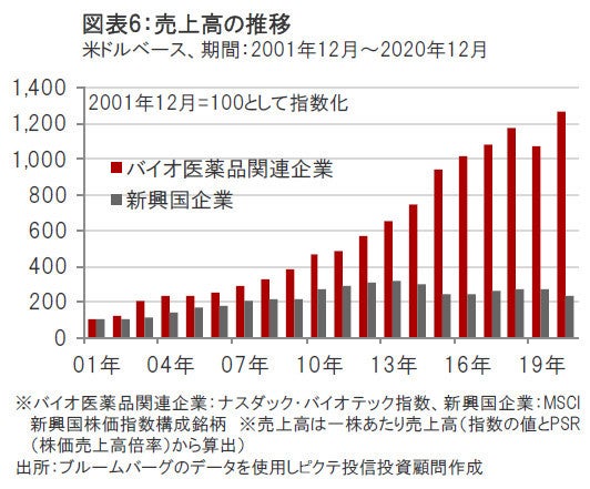 バイオ医薬品関連企業の売上高は、新興国の企業を上回って堅調に成長してきました。(図表6参照)