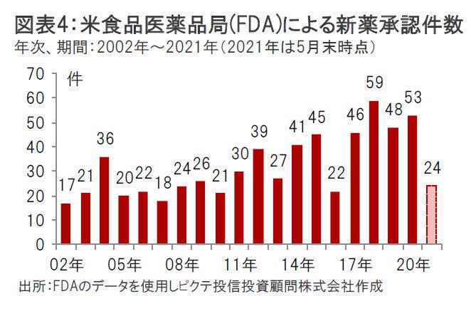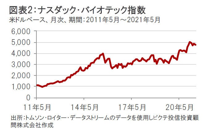 バイオ医薬品セクターについては、短期的には新型コロナウイルスの感染動向とワクチンの動向に注目が集まっています。一部の製薬企業やバイオ医薬品企業は引き続き新型コロナウイルスの治療薬やワクチンの開発を急ピッチで行っています。ワクチンの治験や各国政府によるワクチン接種はすすめられており、現在は生産能力などのボトルネックに注目が集まっています。一方、新型コロナウイルスの影響により検診を控える動きなどがあり、医薬品企業の業績に影響が出ています。また米国で薬価を含むヘルスケア制度全般の改革の動きや、昨年来株価が大きく上昇した一部の中小型銘柄の流動性リスクなども注視していく必要があると考えます。