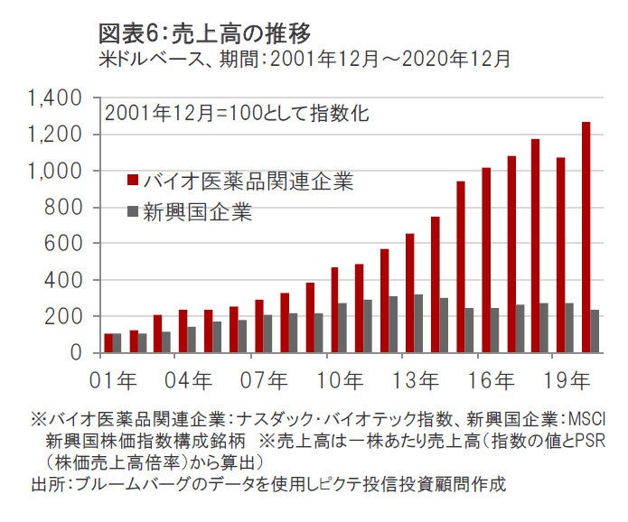 バイオ医薬品関連企業の売上高は、新興国の企業を上回って堅調に成長してきました。(図表6参照)