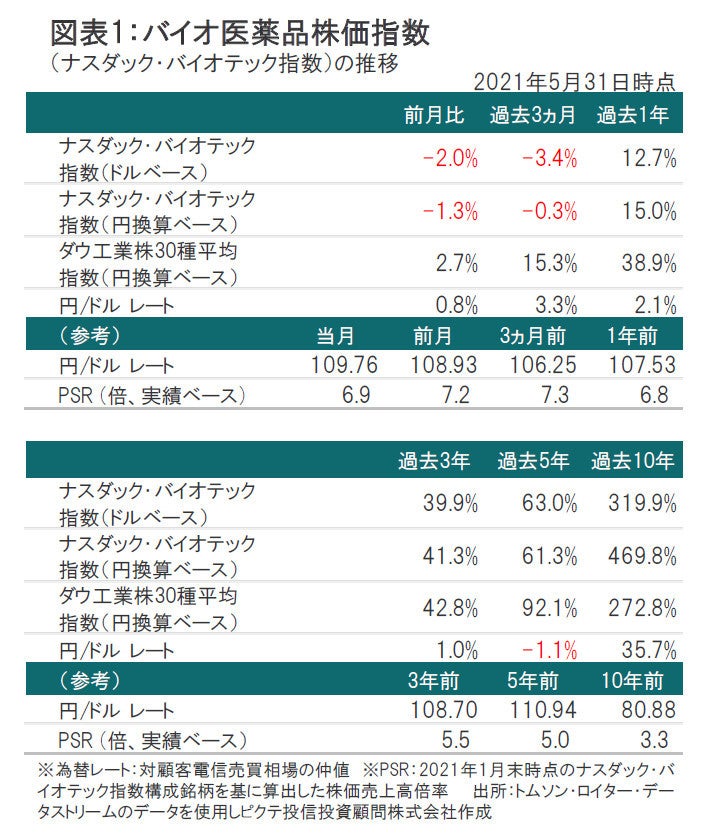 5月のナスダック・バイオテック指数(ドルベース、配当含まず)は下落しました。