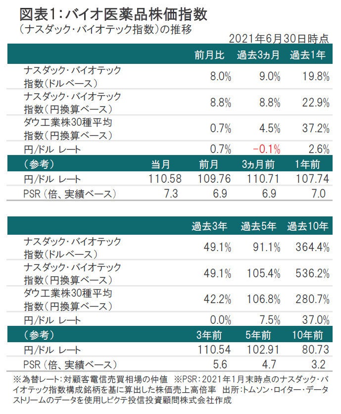 6月のナスダック・バイオテック指数(ドルベース、配当含まず)は上昇しました。