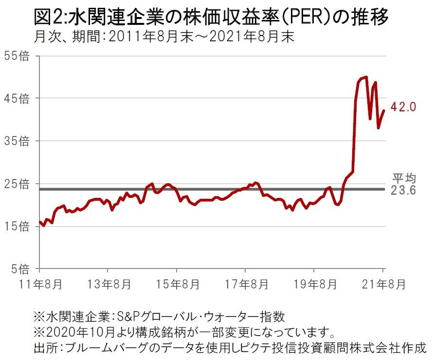 2021年の見通しについては、新型コロナワクチン接種の進展に伴う経済活動の再開期待等の高まりを受け、世界的に購買担当者景気指数(PMI)が堅調に推移するなど企業の景況感の改善が見られ、明るい見通しが広がっています。一方で、追加の経済対策や各国中央銀行による金融政策の変更について規模や時期に関する不透明感が懸念要因になっていくと考えています。加えて、インフレの上振れを受けた価格上昇圧力が持続するかどうかや、米国の連邦準備制度理事会(FRB)による金融緩和策縮小や利上げに踏み切るタイミング、また、それがどのように株式のバリュエーションに影響を及ぼすか等、見極める必要があると考えます。水関連インフラへの投資は必要不可欠であり、中長期的に見ると、世界的に事業展開を行う水関連銘柄のファンダメンタルズは堅調であると考えます。温暖化の影響から世界的な気候変動によって引き起こされる干ばつや洪水の問題なども、水関連インフラへの投資を呼び起こしています。中長期的に水関連銘柄は引き続き魅力的な投資対象であると考えます。