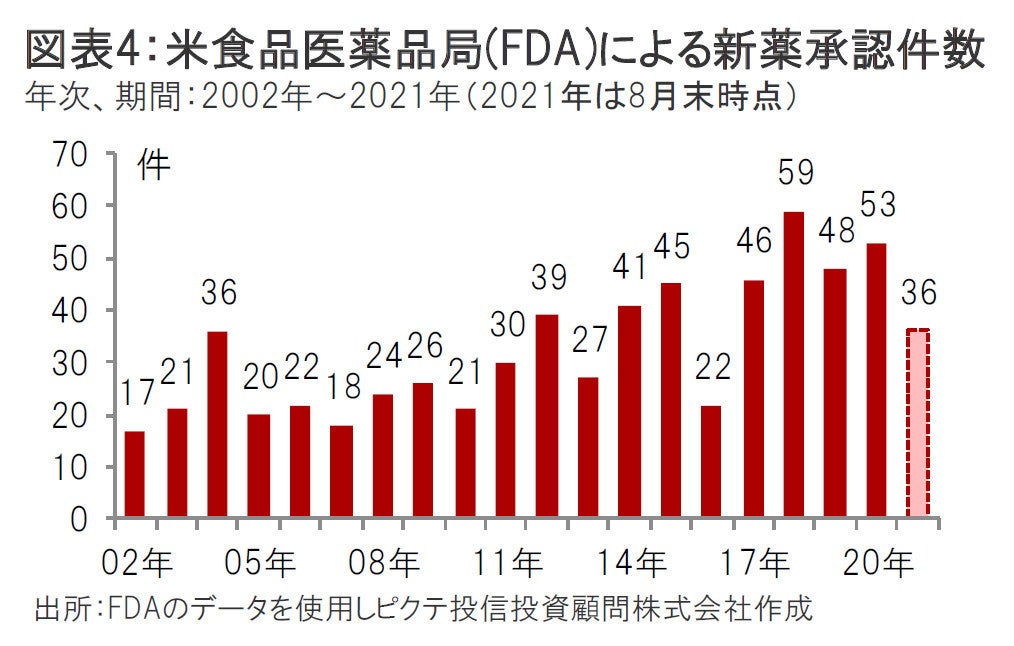 バイオ医薬品セクターについては、現在、ブースター接種について大きな議論がなされるなどしており、短期的には引き続き新型コロナウイルスの感染動向を注視する必要があると考えます。米FDAはリーダー不在で、身動きの取れない状態が続いています。一方、大手医薬品会社や大手のバイオ医薬品企業は2025年から始まる大きな特許の崖に直面しており、下半期からM&Aのペースが上がることが予想されます。