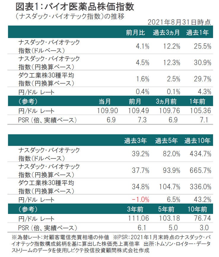 8月のナスダック・バイオテック指数(ドルベース、配当含まず)は上昇しました。