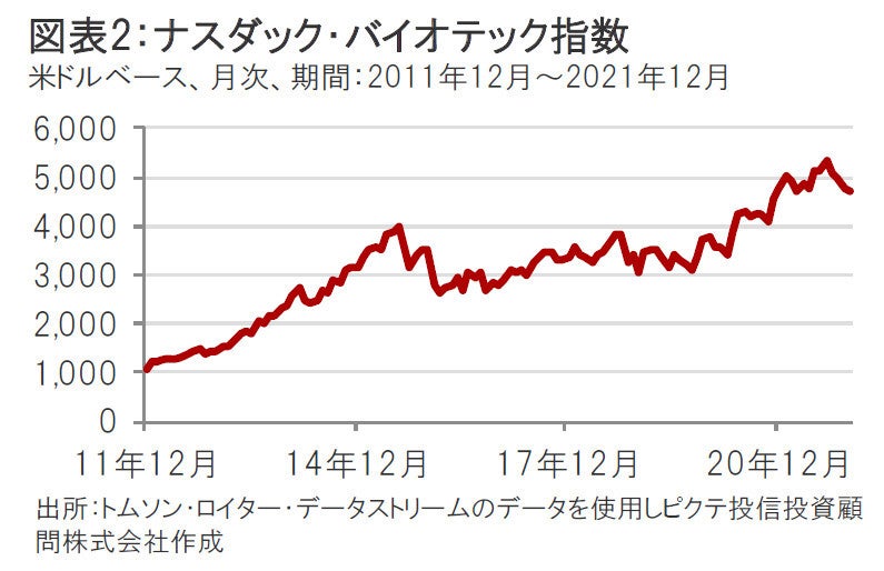 バイオ医薬品セクターについては、2022年には米食品医薬品局(FDA)への信頼が高まり、状況が好転するものと考えます。また大手医薬品企業や大手バイオ医薬品企業はM&Aの原資となる多額の現金を有していることも注目されます。他方、バイオ医薬品株式市場は、このところ米国株式市場を下回るパフォーマンスとなっていますが、バリュエーションが再び魅力的な水準となり、センチメントも弱気であることから、長期的な価値を見出す機会となっている可能性があると考えます。