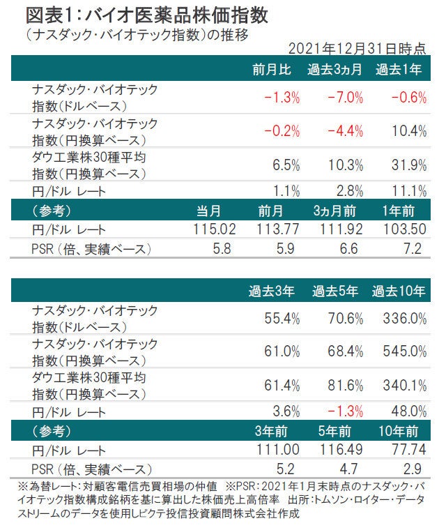 12月のナスダック・バイオテック指数(ドルベース、配当含まず)は下落しました。