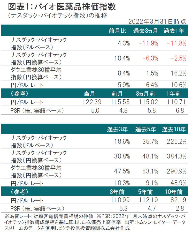 3月のナスダック・バイオテック指数(ドルベース、配当含まず)は上昇しました。