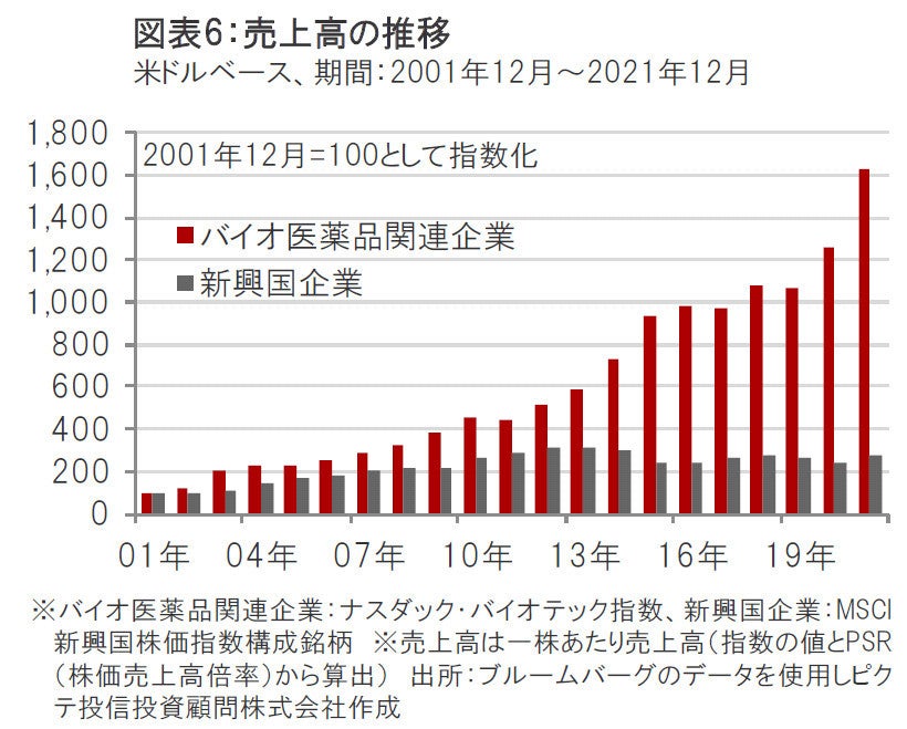 バイオ医薬品関連企業の売上高は、新興国の企業を上回って堅調に成長してきました。(図表6参照)