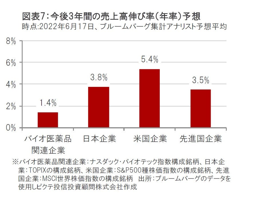 一方、今後の売上高の伸びについては、2023年以降、モデルナ(米国)、ビオンテック(ドイツ)の新型コロナウイルス・ワクチンの売上が大幅に減少すると予想されていることが影響し、米国企業や先進国企業を下回ると予想されています。(図表7参照)