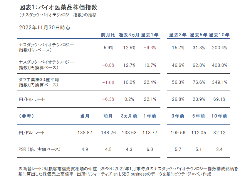 11月のナスダック・バイオテクノロジー指数(ドルベース、配当含まず)は上昇しました。