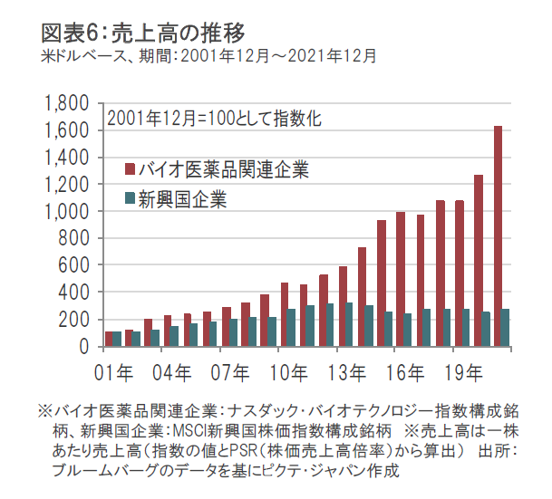 バイオ医薬品関連企業の売上高は、新興国の企業を上回って堅調に成長してきました。(図表6参照)
