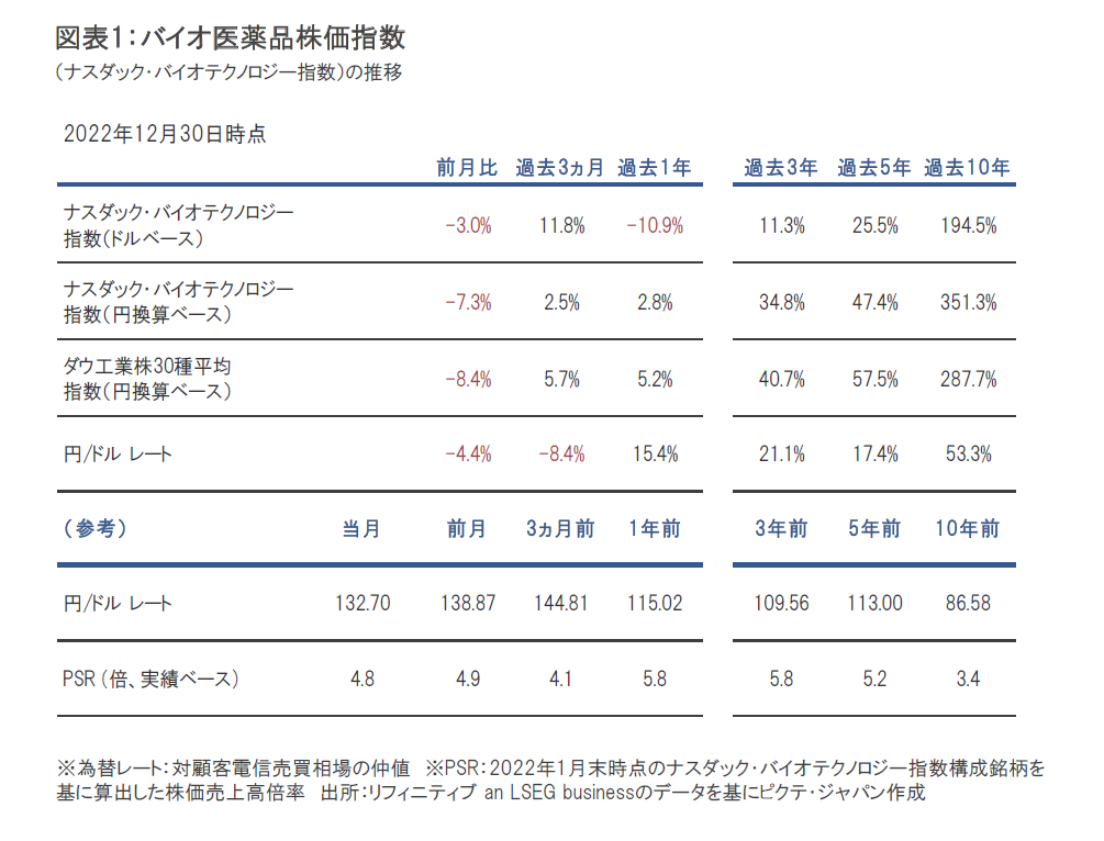 12月のナスダック・バイオテクノロジー指数(ドルベース、配当含まず)は下落しました。