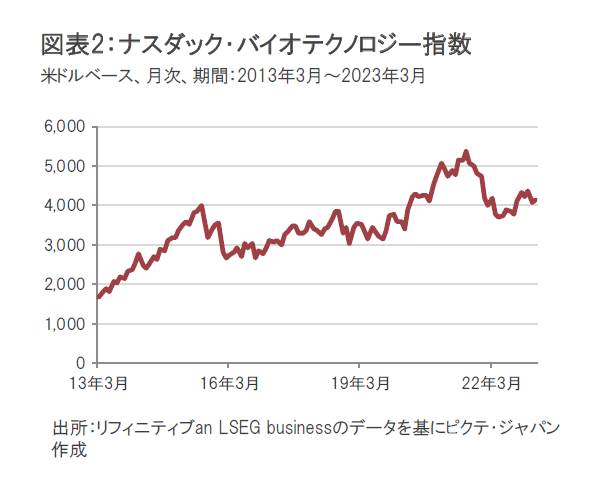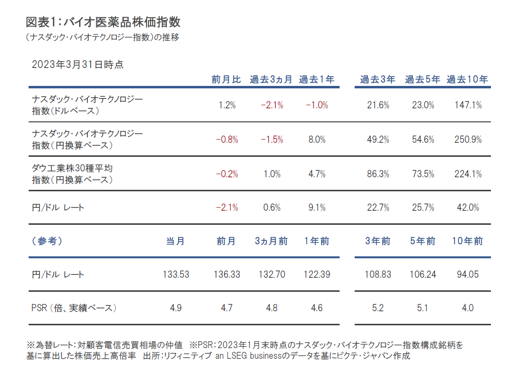 3月のナスダック・バイオテクノロジー指数(ドルベース、配当含まず)は上昇しました。