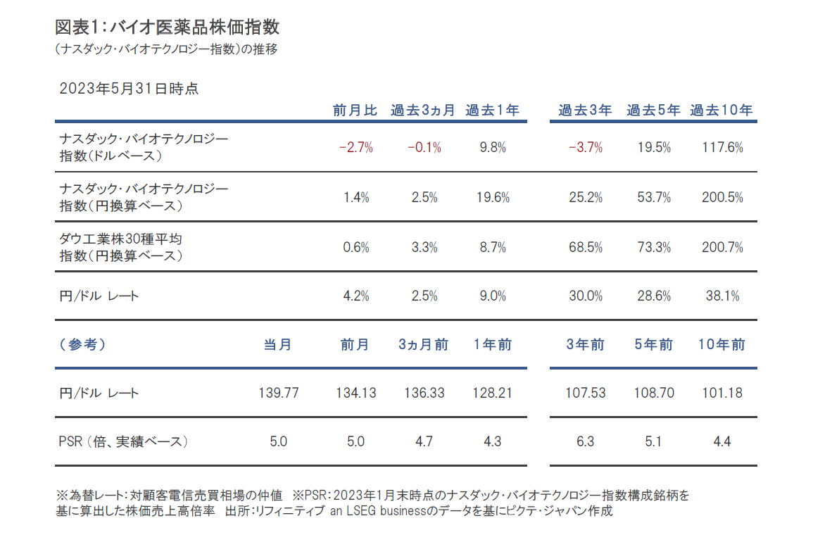 5月のナスダック・バイオテクノロジー指数(ドルベース、配当含まず)は、下落しました。