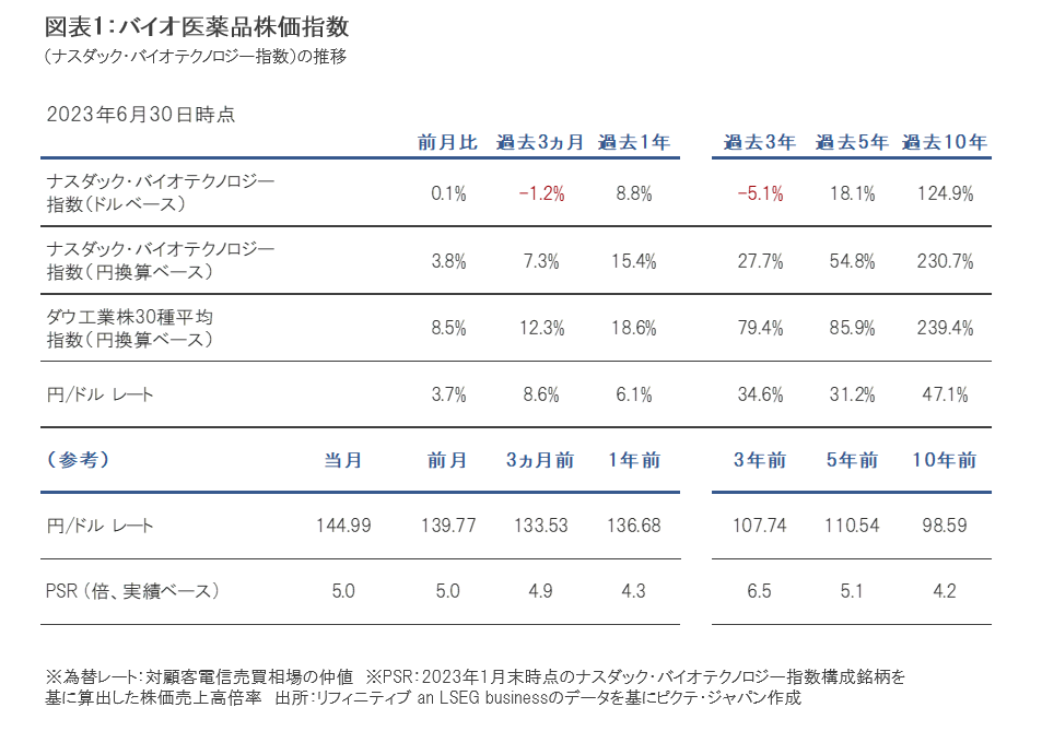 6月のナスダック・バイオテクノロジー指数(ドルベース、配当含まず)は、小幅に上昇しました。