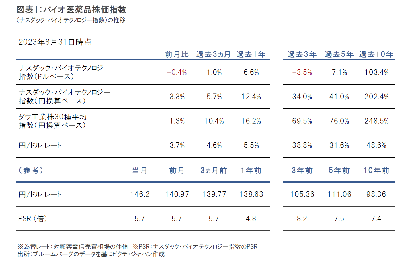 8月のナスダック・バイオテクノロジー指数(ドルベース、配当含まず)は下落しました。