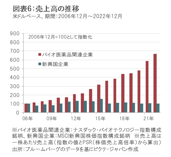 バイオ医薬品関連企業の売上高は、新興国の企業を上回って堅調に成長してきました。(図表6参照)