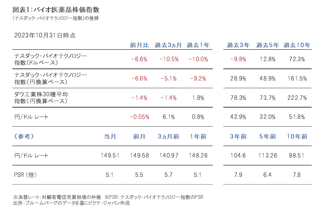 10月のナスダック・バイオテクノロジー指数(ドルベース、配当含まず)は下落しました。