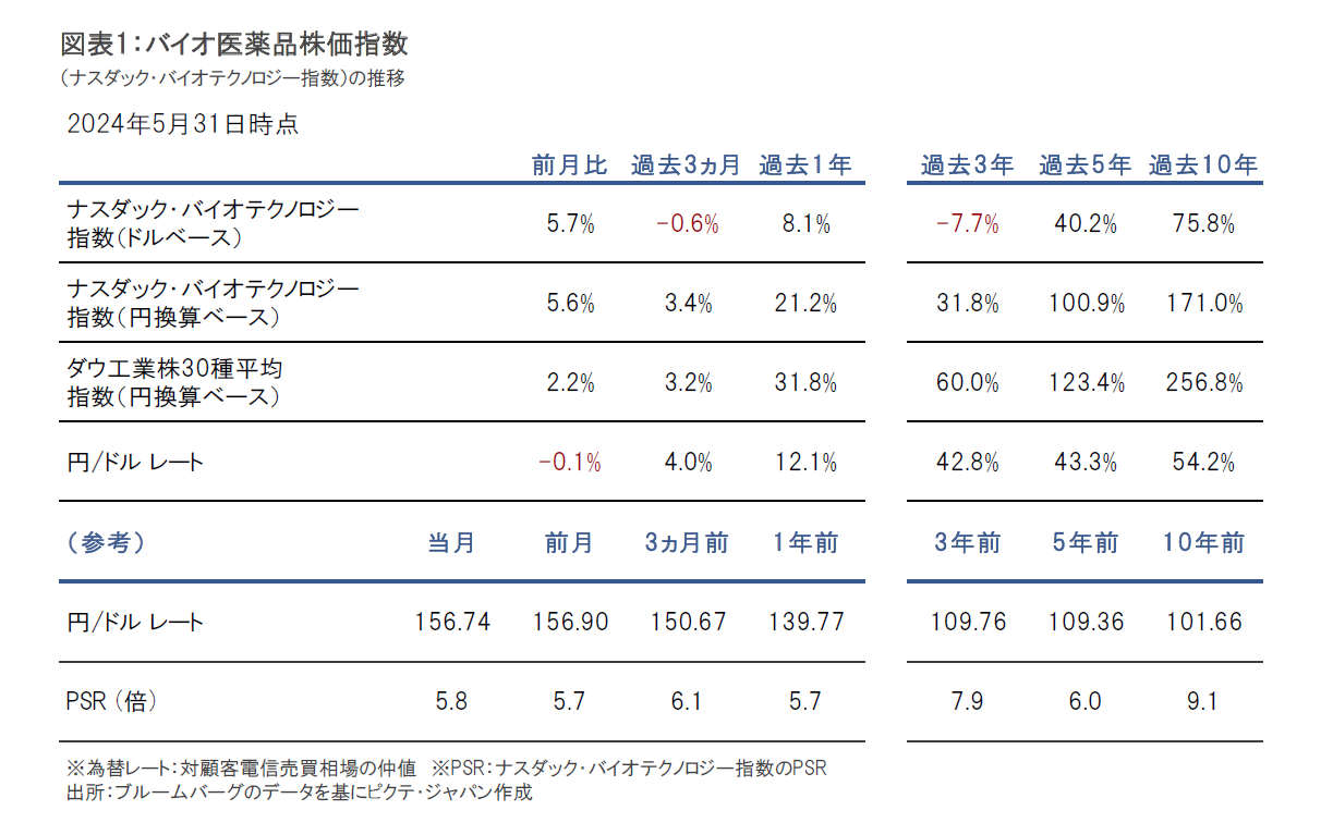 5月のナスダック・バイオテクノロジー指数(ドルベース、配当含まず)は、上昇しました。
