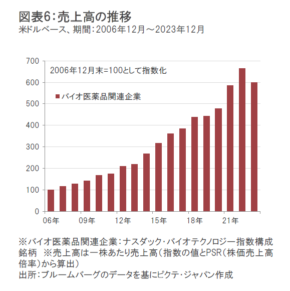 過去の実績では、バイオ医薬品関連企業の株価は、売上高の伸びとともに上昇してきたことがわかります。(図表8参照)