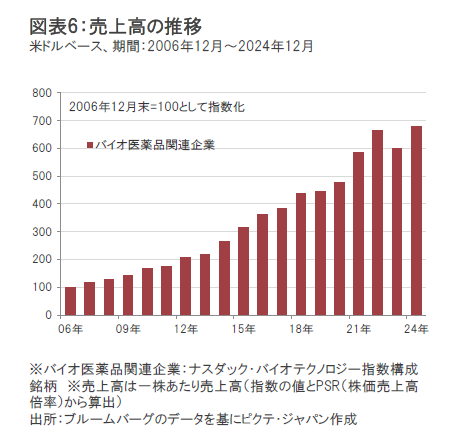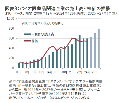 過去の実績では、バイオ医薬品関連企業の株価は、売上高の伸びとともに上昇してきたことがわかります。(図表8参照)