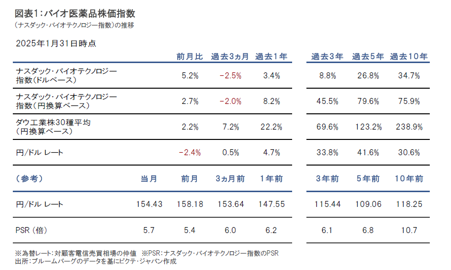 1月のナスダック・バイオテクノロジー指数(ドルベース、配当含まず)は上昇しました。