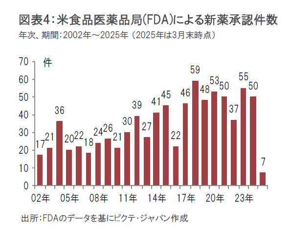 新薬の開発では、画期的な新薬の開発が続いており、AI(人工知能)の進化が、さらに開発を加速するとみています。また米食品医薬品局(FDA)が、医療ニーズが満たされていない適応症の治験については柔軟な姿勢を示していることも治療薬の開発を支援するものと考えます。さらに、資金調達については、新薬の開発が順調な企業では引き続きスムーズに進められています。一方、IPOは依然として低調な状況が続いています。引き続き米国の金融政策、マクロ経済の動向、トランプ新政権の政策動向には注視が必要と考えます。