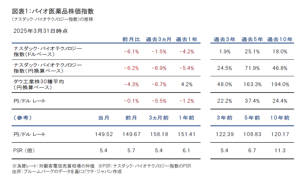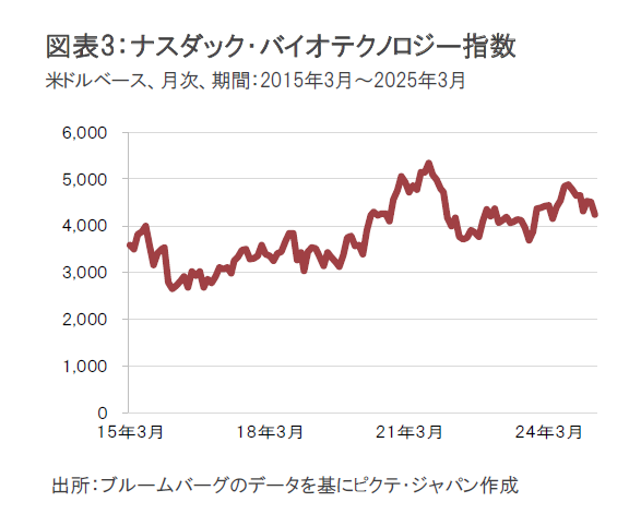 米国のトランプ政権による貿易相手国に対する関税賦課が世界的な貿易戦争に発展し、景気減速とインフレの加速を招くとの懸念が、世界の株式市場の下落要因となりました。このような環境下、バイオ医薬品株式については、米食品医薬品局(FDA)の人員削減の動きなども株価の下落要因となりました。