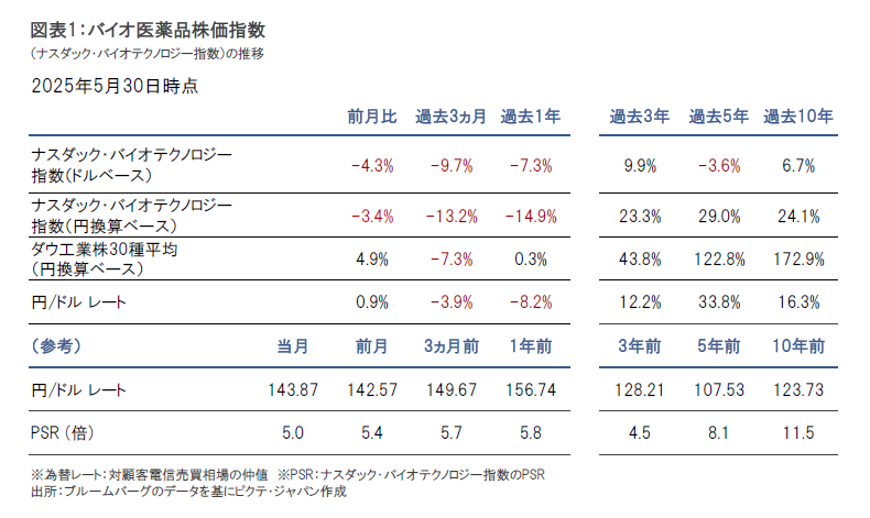 5月のナスダック・バイオテクノロジー指数(ドルベース、配当含まず)は下落しました。