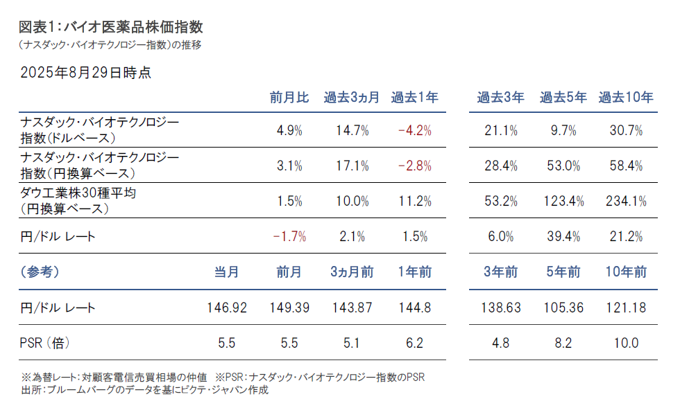 8月のナスダック・バイオテクノロジー指数(ドルベース、配当含まず)は上昇しました。