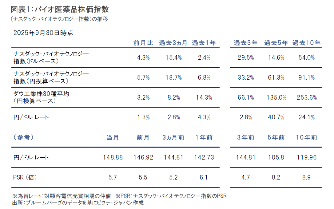 9月のナスダック・バイオテクノロジー指数(ドルベース、配当含まず)は上昇しました。