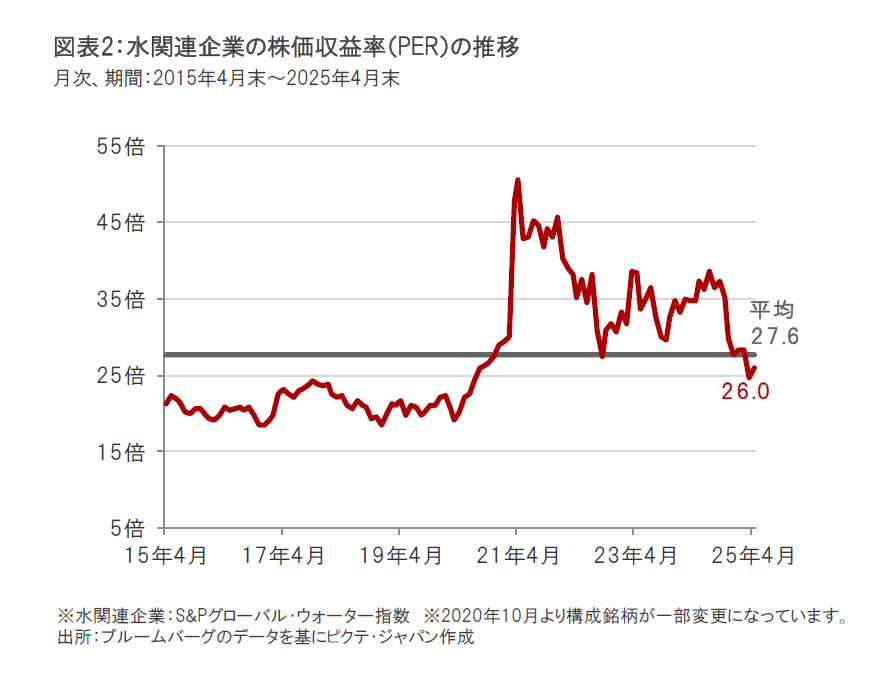 水関連インフラへの投資は必要不可欠であり、中長期的にみると、世界的に事業展開を行う水関連銘柄のファンダメンタルズ(基礎的条件)は堅調であると考えます。温暖化の影響から世界的な気候変動によって引き起こされる干ばつや洪水の問題なども、水関連インフラへの投資を呼び起こしています。中長期的に水関連銘柄は引き続き魅力的な投資対象であると考えます。