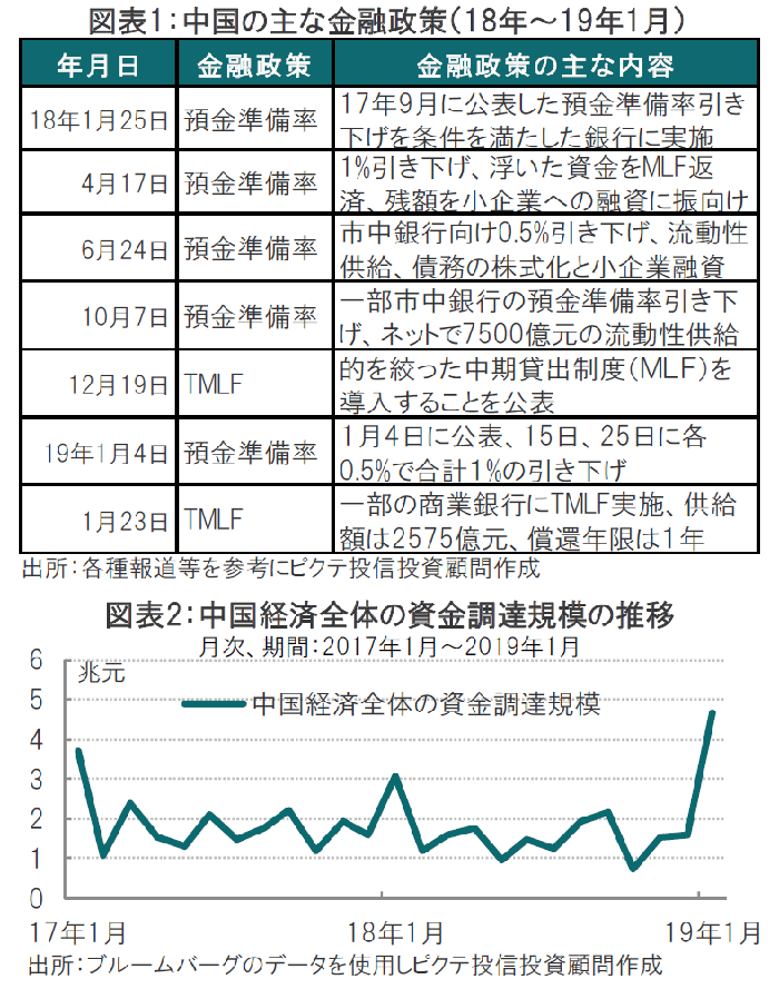 米中貿易戦争の影響もあり、中国経済の減速が懸念されています。米国との貿易交渉の先行きが不透明ななか、中国当局の金融・財政政策による景気下支え策が注目されます。人民元の金融政策執行報告や、当局のコメントなどから、08年や15年のような大胆な政策でなく、昨年同様、的を絞った資金供給が今後の金融政策の主体となることが想定されます(図表1参照)。