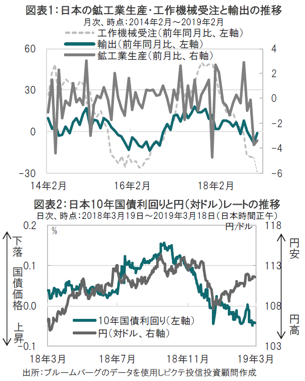 ただ、日本の景気の総括判断について、声明文では「緩やかに拡大している」との表現を据え置く一方で、輸出は「足元では弱めの動き」とし、鉱工業生産も「増加基調にある」から「足元では弱めの動きとなっているが、緩やかな増加基調にある」と下方修正しました(図表1参照)。