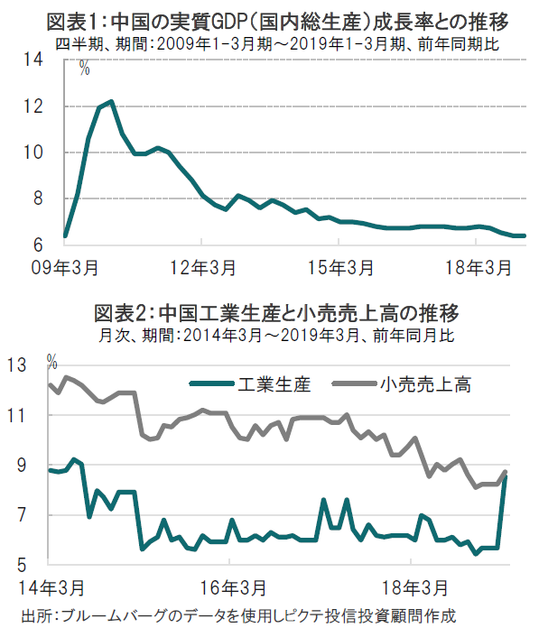 中国国家統計局が2019年4月17日に発表した年1-3月期GDP(国内総生産)成長率は前年同期比6.4%と、市場予想(6.3%)を上回り、前期(6.4%)と一致しました(図表1参照)。中国の景気減速懸念が和らぐ結果となりました。