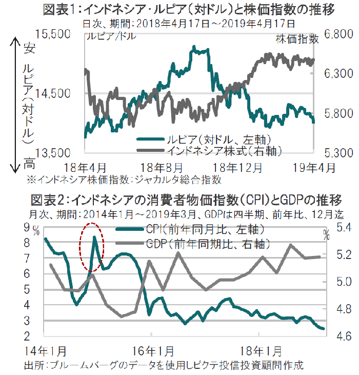 なお、公式の開票結果は、報道では5月22日までに公表される予定ですが、市場では、政権維持による政策の安定化期待からルピア高傾向です(図表1参照)。