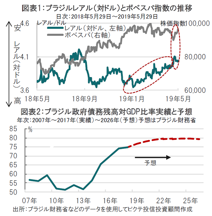 市場では、改革には困難も伴うとして、改革法案提出の前後から株式市場の下落や為替市場ではレアル安が進行しました(図表1参照)。