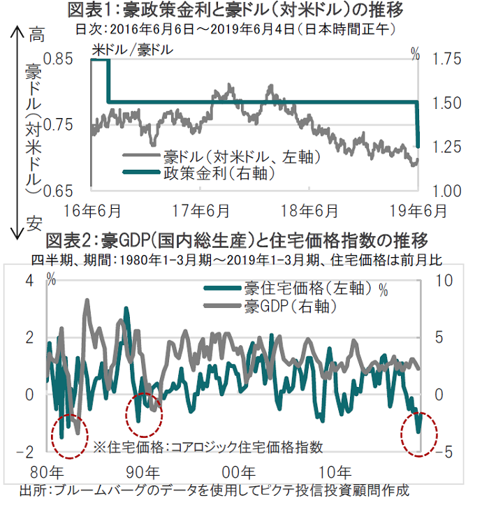 イント引き下げて1.25%としました。豪中銀の利下げは16年8月以来2年9ヵ月ぶりです(図表1参照)。