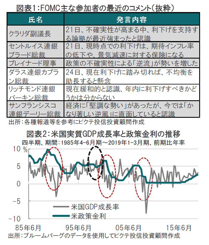 反対に、利下げに消極的な発言を最近したのは、カプラン総裁や、バーキン総裁などです(図表1参照)。