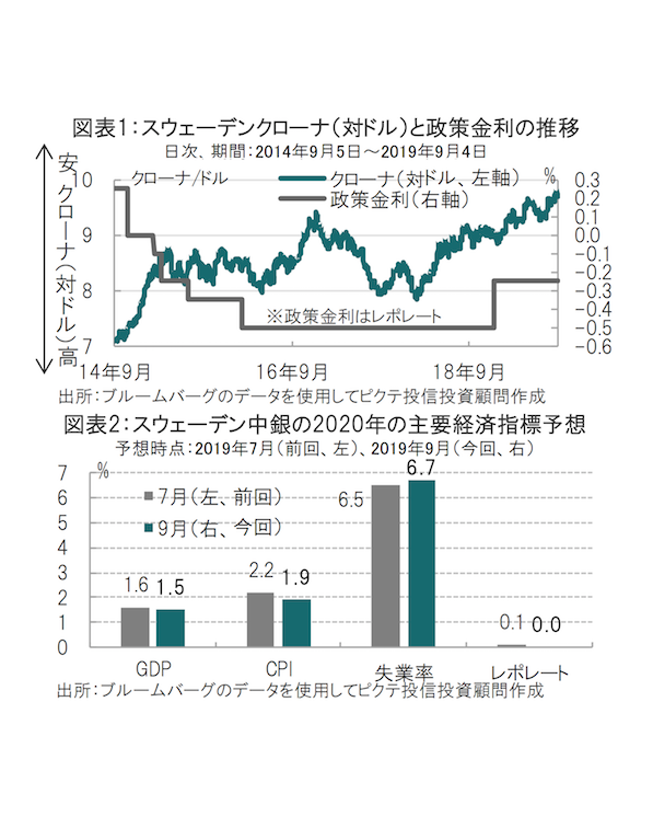 スウェーデン中央銀行(リクスバンク)は2019年9月5日、市場の予想通り主要政策金利をマイナス0.25%に据え置くことを発表しました(図表1参照)。市場関係者の多くが利上げ方針の撤回を見込んでいましたが、リクスバンクは緩和的な金融政策からの出口戦略を堅持する計画を表明しました。