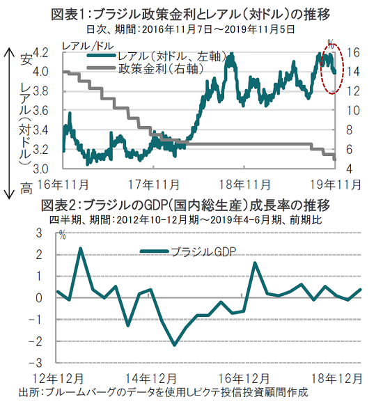 懸案であったブラジルの年金改革法案が成立の運びとなりました。通貨レアル市場の動向を見ると、足元は財政改革の動きを前向きに評価しているようです(図表1参照)。ただ、ボルソナロ政権の次の課題である行政・財政改革は憲法改正が必要で、ハードルは高くなっています。今後の動向にも注意が必要と見ています。