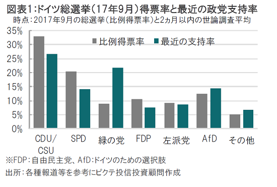 また、最終的には、再び総選挙(21年秋の選挙の前倒し)の可能性も考えられます。この場合、支持率を見ると、第1党はCDU/CSUとなることも見込まれます。