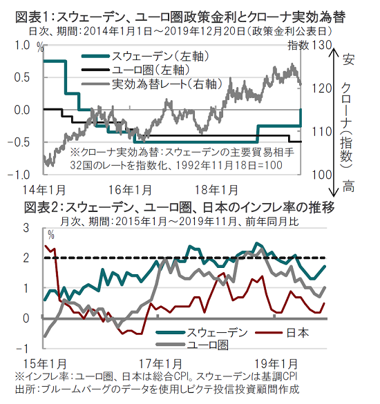 スウェーデン中央銀行(リクスバンク)は2019年12月19日、市場予想通り政策金利をマイナス0.25%からゼロ%に引き上げました。イングベス総裁は、景気減速の兆候よりもマイナス金利の悪影響を懸念する考えを示しました(図表1参照)。
