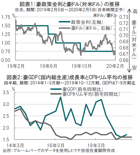 オーストラリア準備銀行(豪中央銀行)は2020年2月4日の理事会で、政策金利を過去最低水準の0.75%に据え置くと公表しました(図表1参照)。市場では据え置き予想が大半ながら、一部利下げも見込まれていました。