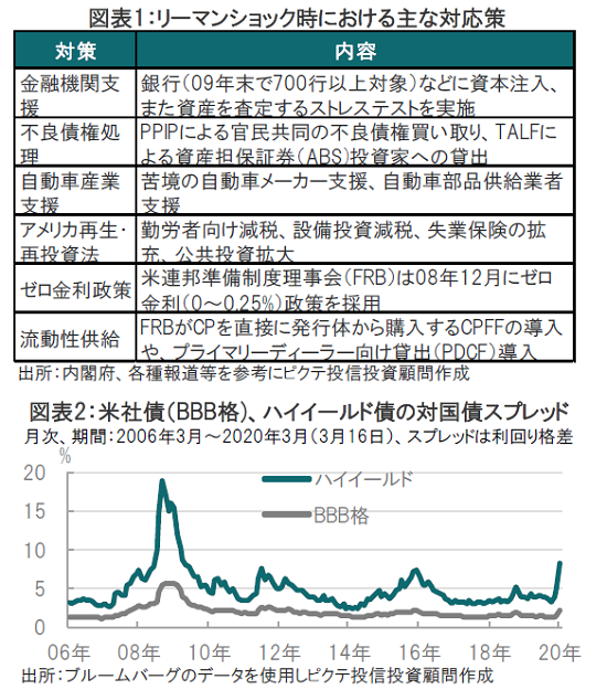 また、米連邦準備制度理事会(FRB)はコマーシャルペーパー市場を通じた米企業の借り入れを支援するため、金融危機時に導入したプログラム(CPFF)やプライマリーディーラ向け融資(PDCF)の導入を表明しました(図表1参照)。