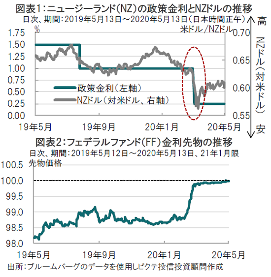 ニュージーランド(NZ)準備銀行(中央銀行)は2020年5月13日に市場予想通り、政策金利であるオフィシャル・キャッシュレート(OCR)を過去最低の0.25%に据え置くことを発表しました(図表1参照)。