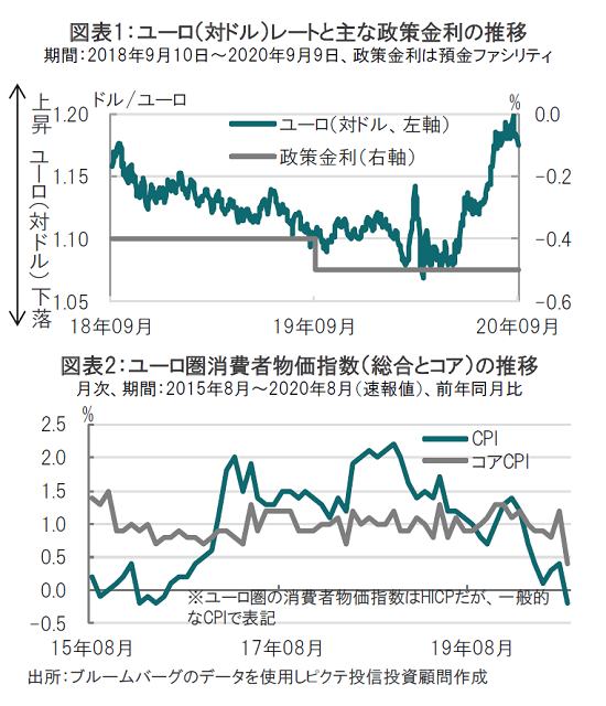 米連邦準備制度理事会(FRB)のパウエル議長は8月後半に開催されたジャクソンホール会議でインフレ目標を平均とする方針を表明しました。欧州中央銀行(ECB)も戦略の見直しを進めていきましたが、9月の政策理事会での公表を期待する声は聞かれません。当面はユーロ圏の目先の課題への対応が優先されると見ています。では、目先の課題とは何か。