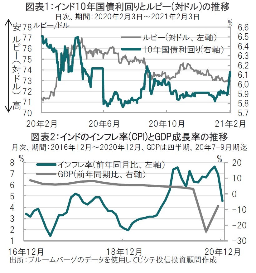 21年度予算案により国債発行が増加するとの観測から、インド国債市場では1月末から10年国債利回りが急上昇しています(図表1参照)。